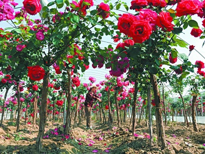 经过两年的驯化试验,树状月季的移栽成功率基本达到了百分之百。口红、金奖章、粉扇、彩云……眼下,已有10多个名优月季品种嫁接成功,6000多棵树状月季成功地移栽大田,进入盛花期。