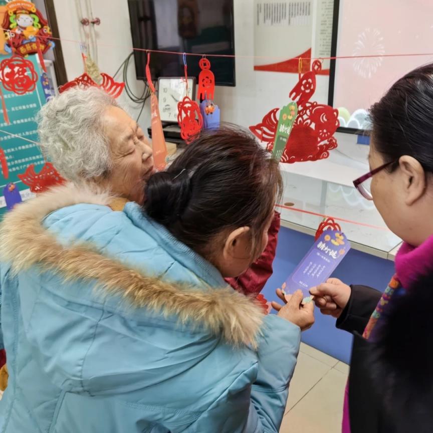 在紫竹院街道兵器工业机关社区的庆元宵活动中,猜灯谜活动最受居民欢迎。20余条字谜错落有序地挂在红绳上等待“解答”。居民们热情高涨,开动脑筋,欢声笑语充满整个空间。