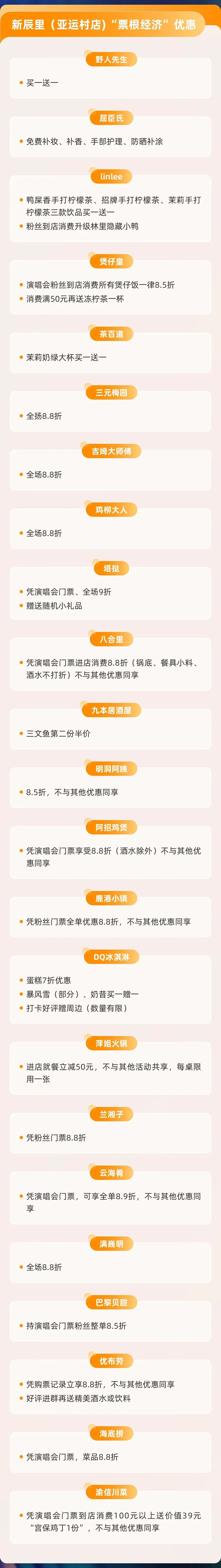 3月27日至4月19日,演唱会期间凭票根+关注,海淀文旅集团微信公众号,即可在无逸咖啡享受如下专属:1.享指定饮品“第二杯半价”优惠;2.特别推出“北斗星”拿铁:蓝丝绒+星空拉花;3.还可请咖啡师为你特制专属的“J”字或星星应援拉花,将心意融入醇香。