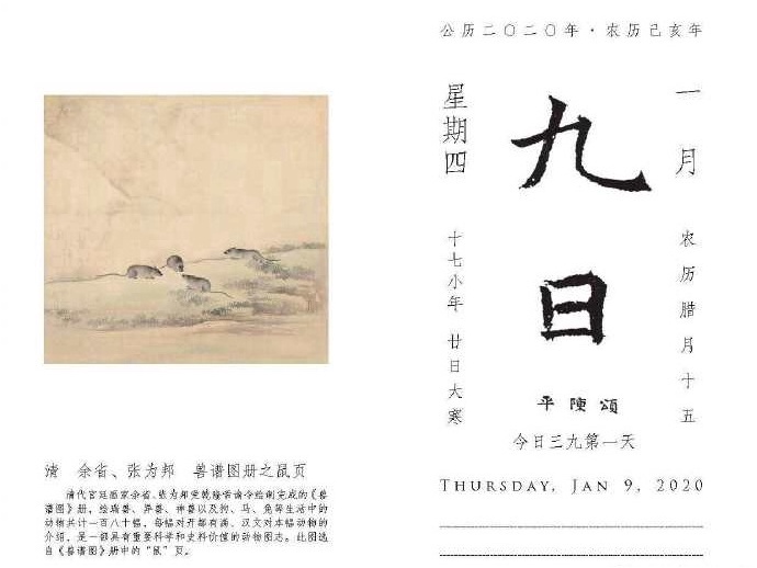 清,余省、张为邦,兽谱图册之鼠页。清代宫廷画家余省、张为邦受乾隆帝谕令绘制完成的《兽谱图》册,绘瑞兽、异兽、神兽以及狗、马、兔等生活中的动物共计一百八十幅,每幅对开都有满、汉文对本幅动物的介绍,是一部具有重要科学和史料价值的动物图志。此图选自《兽谱图》册中的“鼠”页。