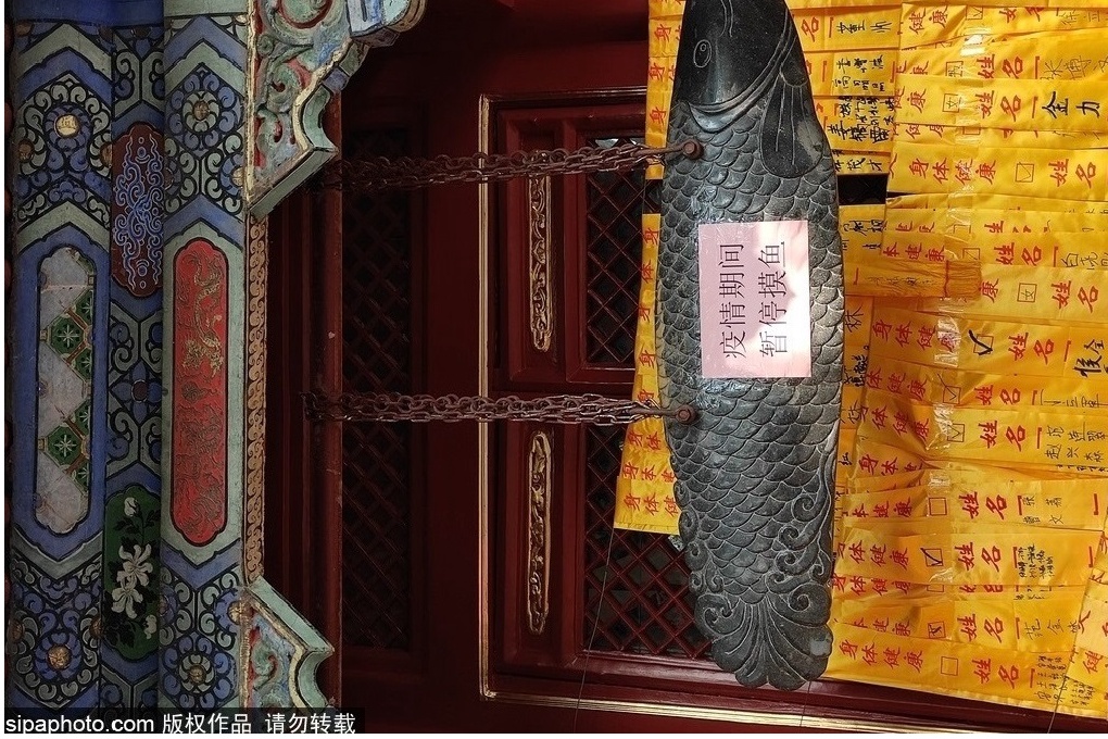 方丈大喜!连呼妙哉!妙哉!于是,命人将石鱼悬于龙王殿前供奉。从此,这石鱼成了潭柘寺的镇寺之宝。只可惜,那天赐石鱼在丙午之乱被小将们用革命的铁锤砸了稀巴烂。现如今,龙王殿前还悬着一条石鱼,则是在1980年代仿制的假古董了。