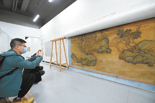 昨天,故宫文保科技部修复室里,青山绿水半卷展示。故宫博物院副院长赵国英介绍,5月18日,首都博物馆将推出《万年永宝——中国馆藏文物保护成果展》,届时观众可一睹这件文物的全貌。这是该院首次将尺幅如此巨大、病害情况如此严重的一件书画类文物进行精心修复。