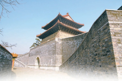 方城明楼是同为一体的两个建筑。宝城最前面有一座城门式建筑,因平面布局为正方形而得名方城。城台下开有城门洞,可直通宝城之内,城台上修筑有重檐歇山顶碑亭式建筑一座,即明楼。明楼的作用类似于民间百姓墓葬的“墓碑”,皇家陵寝的明楼之内,便是“圣号碑”,康陵明楼的“圣号碑”上,镌刻着“大明武宗毅皇帝之陵”。