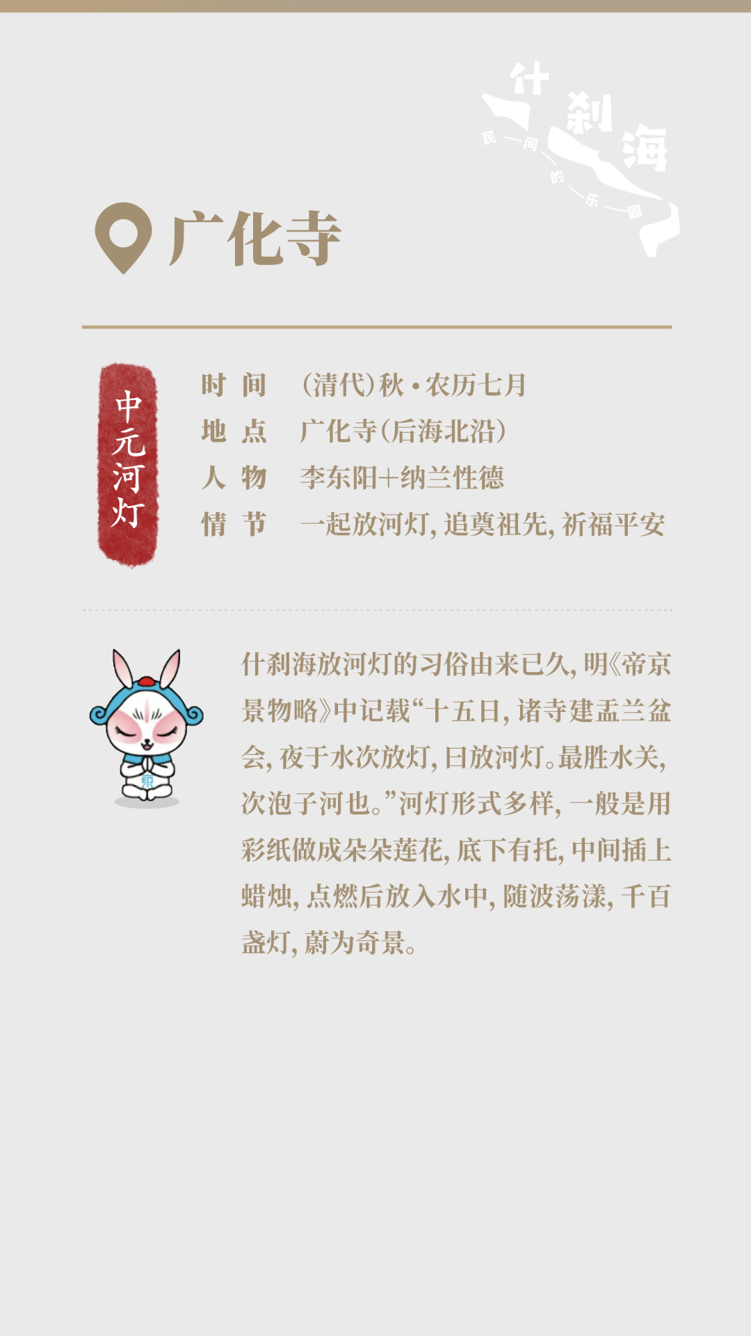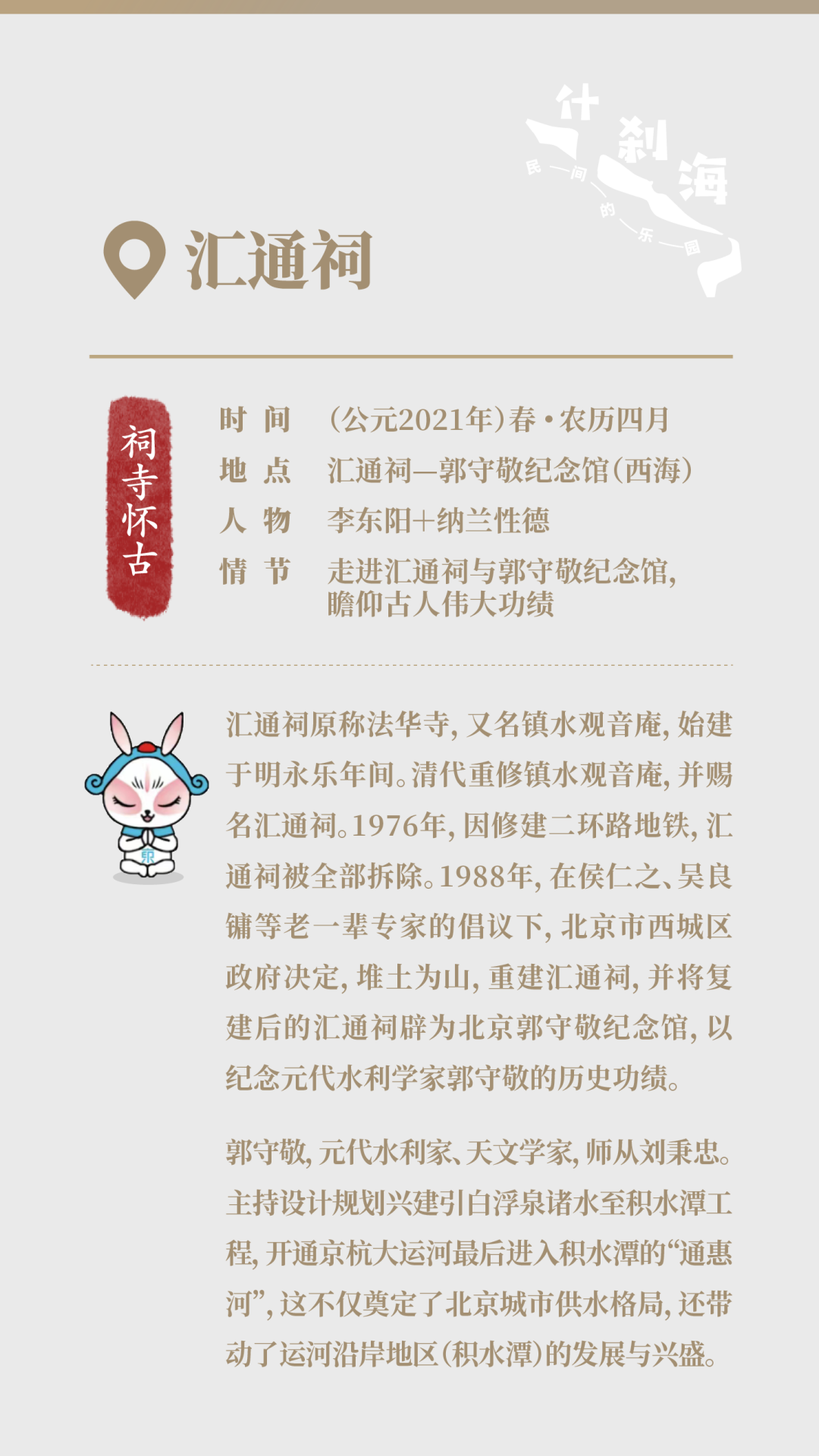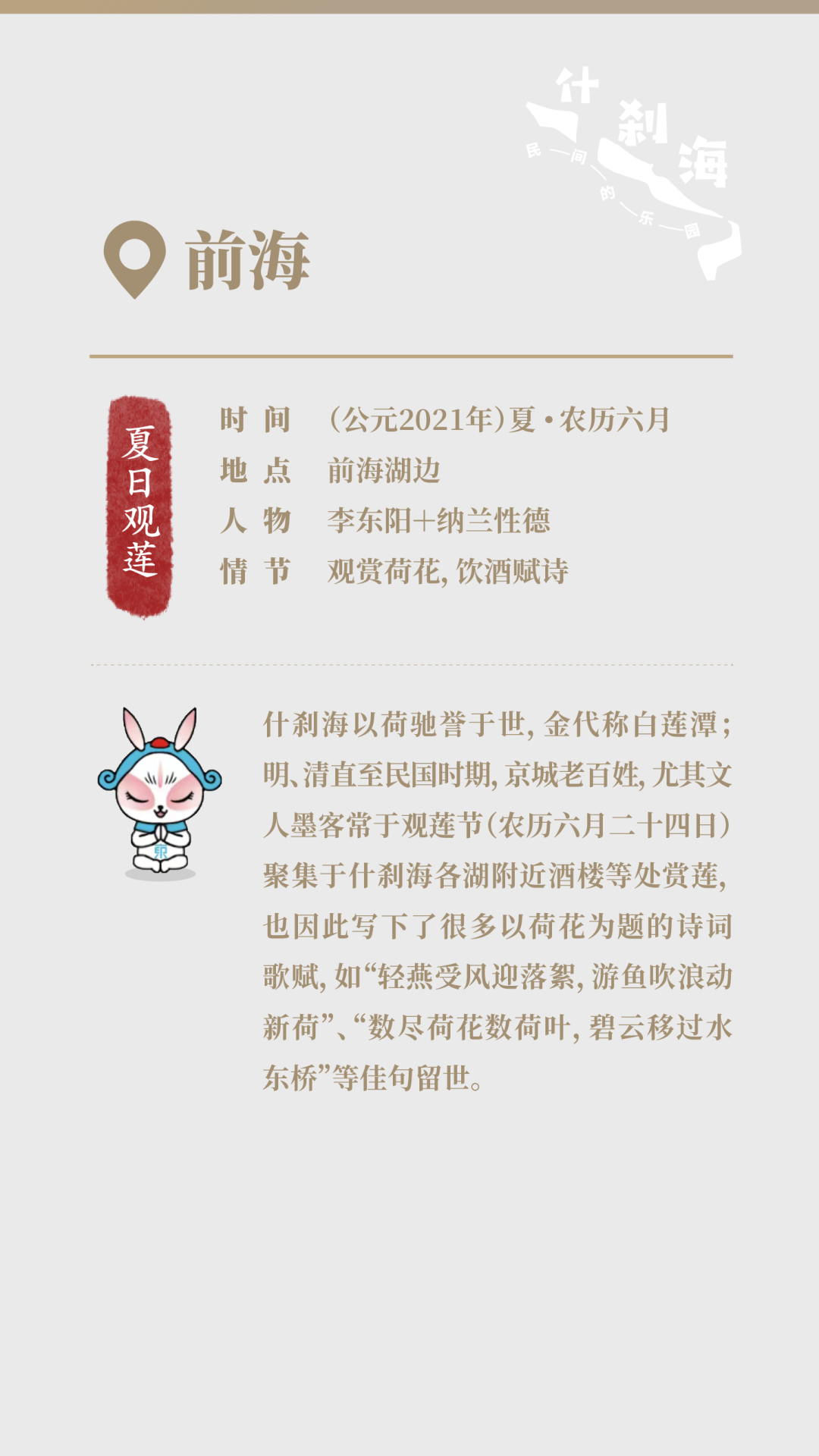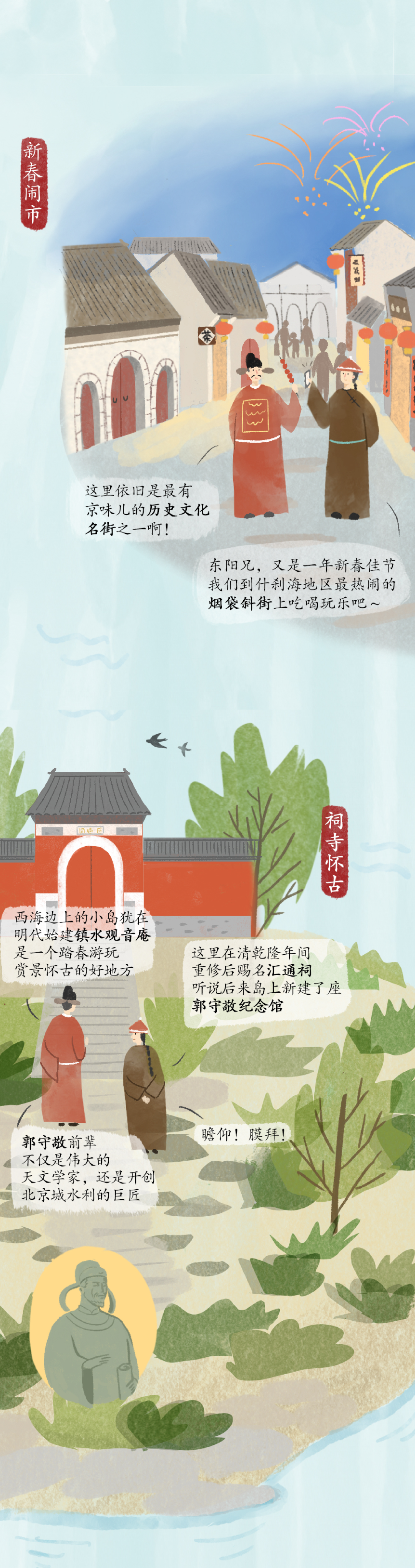 什刹海的故事有点长,信息量有点大......你可以浏览下方“剧本”拆解,解锁故事背后的历史文化,在与古人的时空对话中,感受时间的力量......什刹海的故事未完待续......