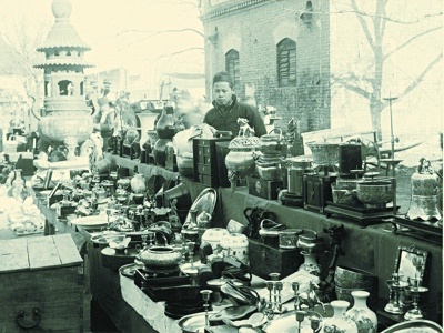 还有一段庙会场景,明显在一个破败寺庙中。1901年,一场大火把隆福寺的钟楼、鼓楼、韦驮殿、大雄宝殿烧成一片废墟,隆福寺的宗教活动开始衰落,商业逐步占据了被烧毁的寺庙空间,甚至有些商用房已经建在了寺庙之内。