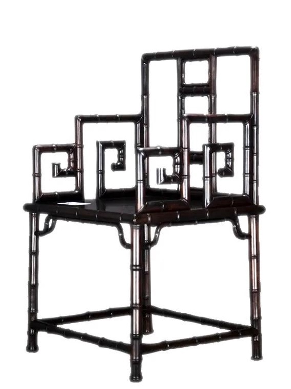 原物藏于故宫博物院,为紫檀材质,清乾隆至嘉庆年间制成,搭脑、靠背及扶手均雕刻竹节纹,靠背板自上而下由三段攒成,形成长方形圈口。