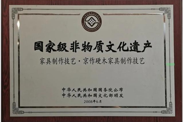 2007年5月,龍顺成“京作硬木家具制作技艺“入选北京市级非物质文化遗产名录;