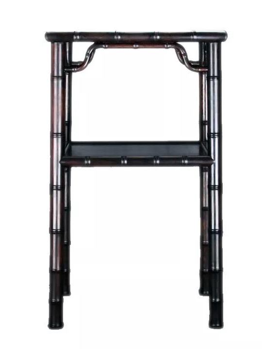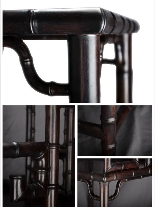 整件藏品腿足、牙子及枨上皆雕刻竹节状,为同类产品中的精品。