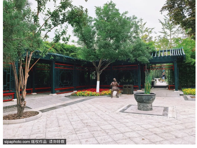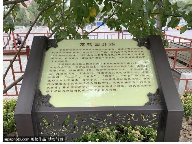 这几个地界儿本身离着也不远,在珠市口西大街附近一座口袋公园——京韵园,以MINI京剧公园的“扮相”聚敛着人气,也将上述的几处经典地界儿连接在了一起~