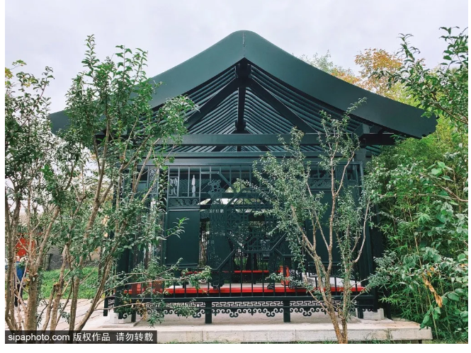 亭台楼阁绿树环绕,京韵园就像是京剧人物在舞台上的低吟浅唱,不仅有着绝美的妆容,更有着延绵的内涵,成为服务周边邻居的一座精品园林。