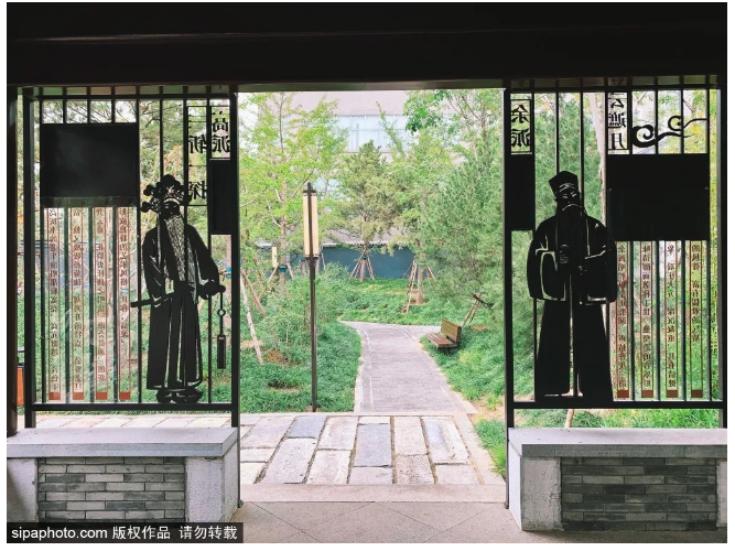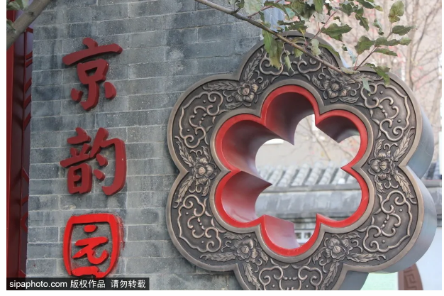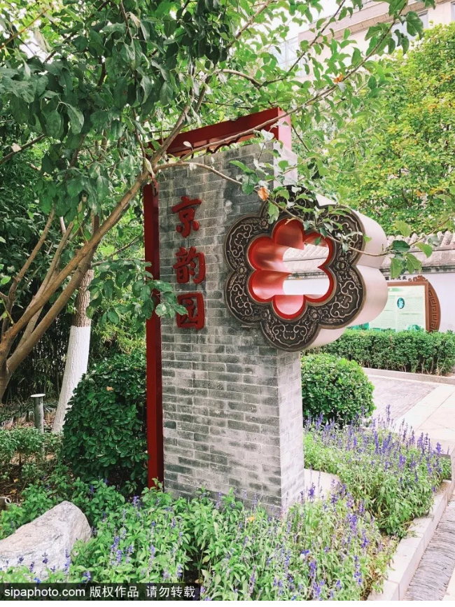 园子里的景观小品、石刻、院墙,全点缀着京剧文化元素,光拿眼瞧着,就能感觉到一股浓浓的京腔京韵~