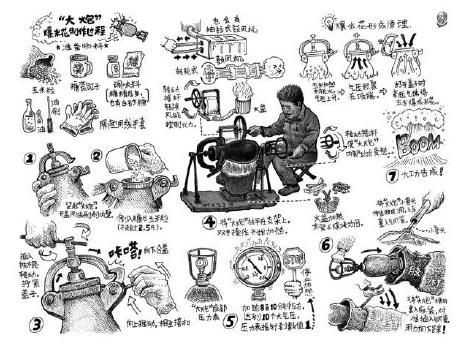 和很多画老北京的书不同,老葛不愿意只画胡同、四合院这些建筑,他想画出胡同里的人间烟火气;他更不愿意画烤鸭、豆汁儿这些符号化的北京元素,而是希望还原一代人真实的生活印记。老葛的画笔落在细处,文字也只讲述个人的体验和观察,邻里间的寒暄、养鱼栽花的窍门、玩具的内部构造、爆米花的原理……衣食住行、花鸟鱼虫,无所不包。