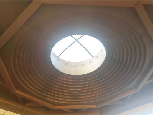 为生动形象地展现这一段波澜壮阔的历史,香山革命纪念馆在设计建造时,匠心独具地设置了“四梁八柱”敞轩建筑景观:顶部采用中国传统建筑最高等级,为仿“藻井”式穹窿顶,通体包裹黄铜,寓意“革命理想高于天”;八根柱子分布在四个角,顶端架起四根梁,以建筑形式“四梁八柱”寓意中共中央同各民主党派和无党派民主人士共商国是,为新中国搭建“四梁八柱”的政治制度框架。