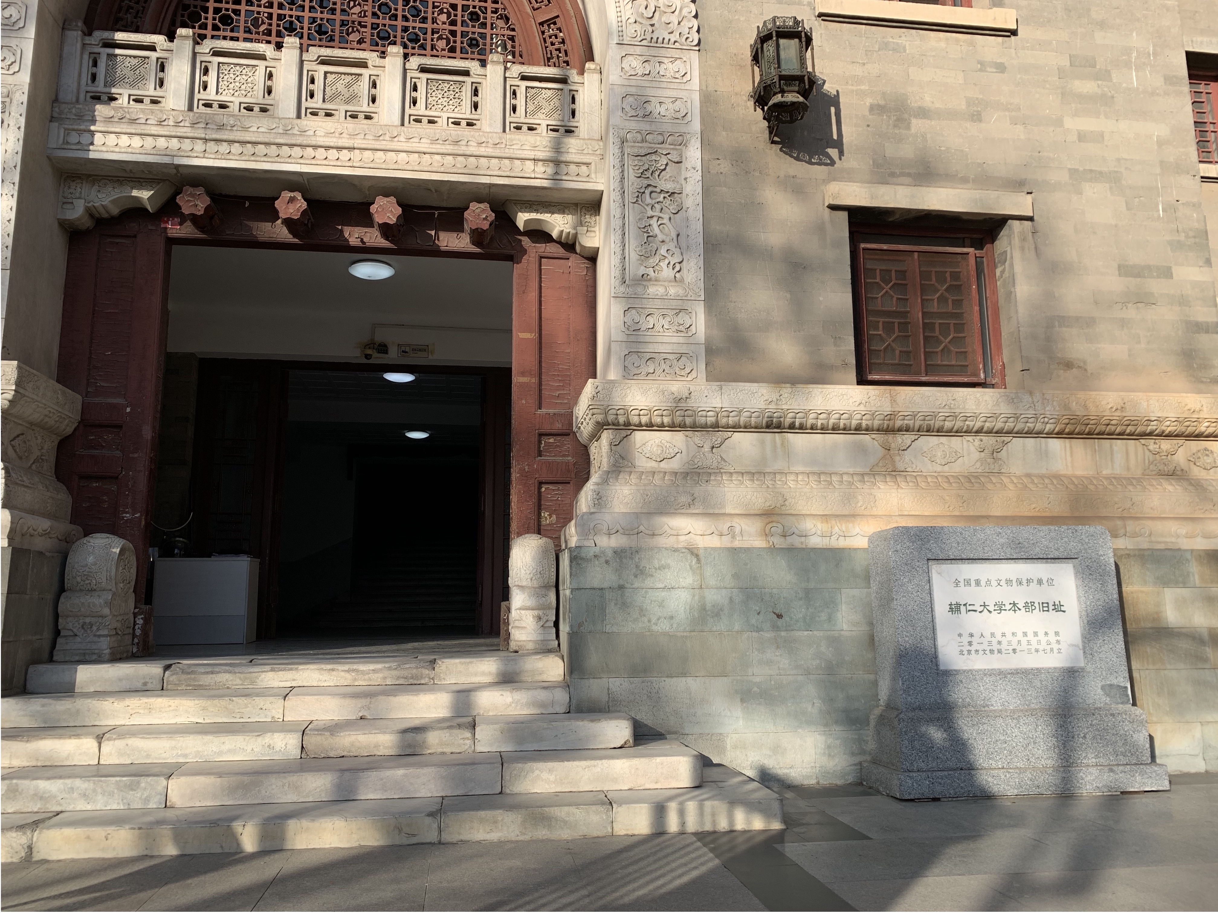 辅仁大学的前身为辅仁社,取《论语》“君子以文会友,以友辅仁”之典,原是教育家英敛之在香山景宜园开办的学校。英敛之去世后,陈垣接任社长,继续筹措款项,正式建立了辅仁大学。辅仁大学的主楼融合了中西建筑元素,整体恢弘大气,又不失典雅。