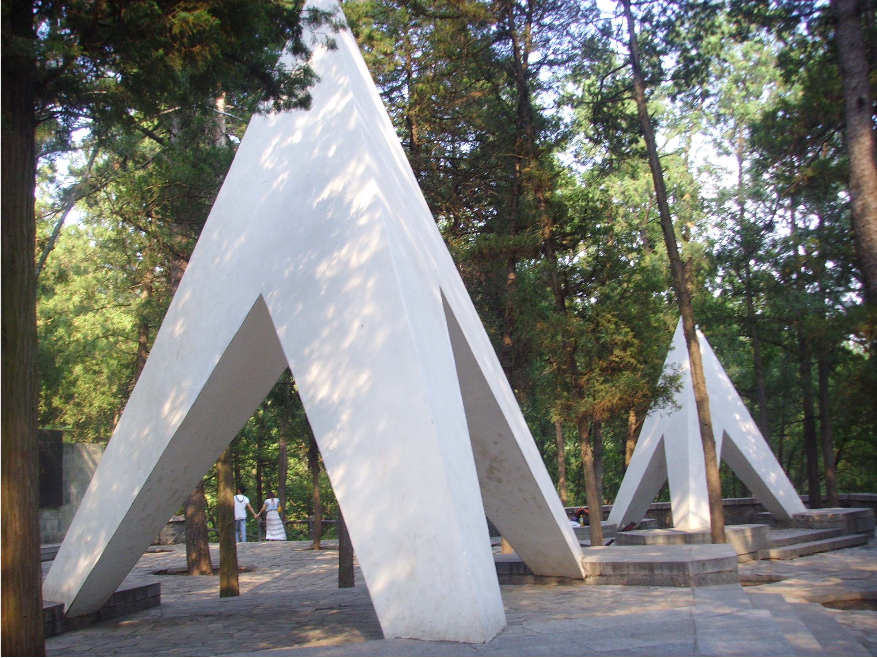 在植物园樱桃沟水源东侧的平台上,伫立着“一二·九运动”纪念碑和纪念亭。纪念碑长28米、高3.3米,碑身为黑色磨光大理石,碑东侧镌刻由曾任全国人大常委会委员长的彭真同志题写的:“一二·九运动纪念亭”八个鎏金大字,字体苍劲有力、金光闪闪。碑西侧镌刻着碑文。