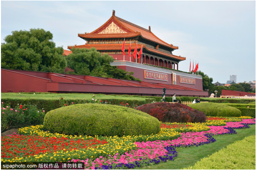 答:天安门广场是北京的中心,北京的心脏。广场中央是人民英雄纪念碑,以及毛主席纪念堂,西侧是人民大会堂,南侧是两座14世纪建立的古代城楼正阳门和前门箭楼,两边还有劳动人民文化宫和中山公园。