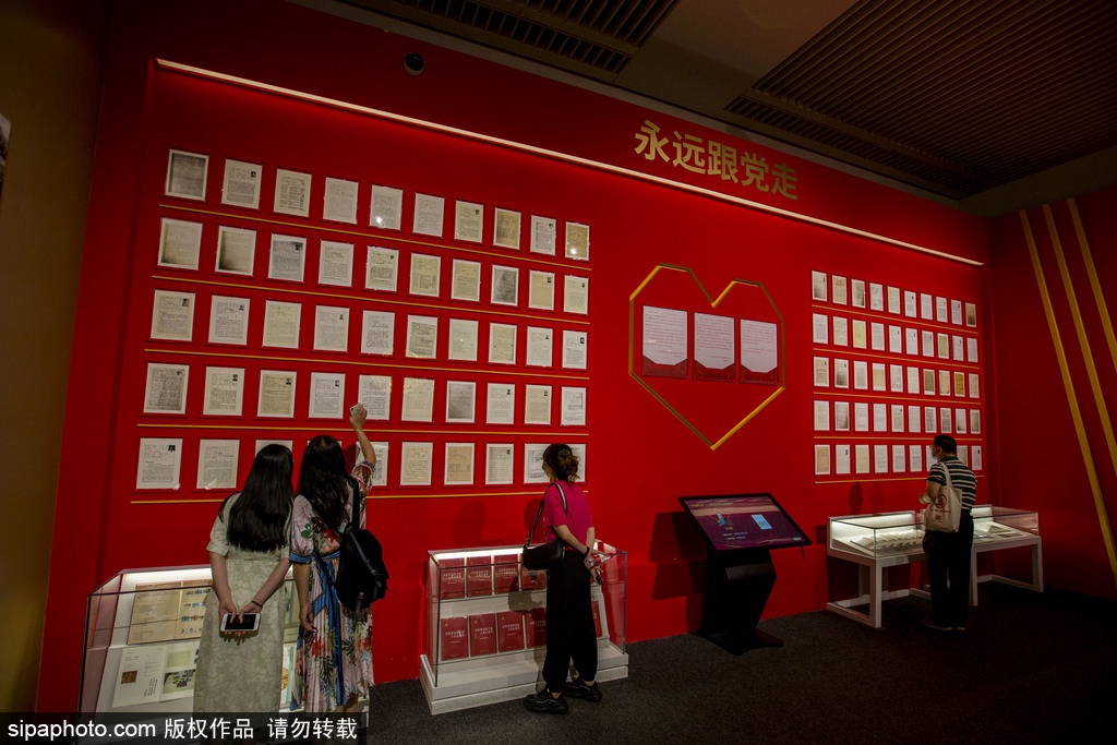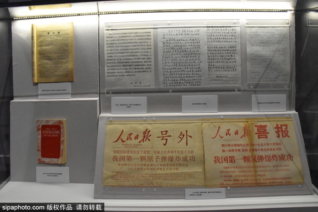 展览接近尾厅,一面巨大的红墙上铺满了新旧不一的手写纸张,这是百位科学家的入党申请书。有的稿纸已经泛黄,有的字迹已经褪色,但仔细看来,每一张都写满了真诚,写满了他们投身科研建设事业的满腔热血。