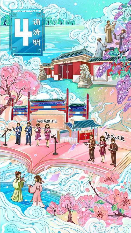 四月芬芳诗意浓,阅读春天笔墨香。陶然诗会忆先贤,海棠诗会颂精神。丁香诗会古意浓,清明吟诗有传统。文旅融合汇菁华,什刹海文化旅游节翻新花。
