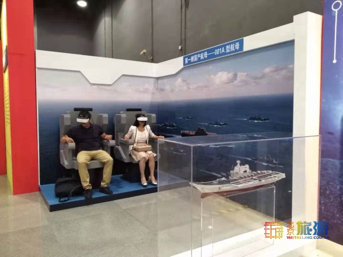 展览上不少区域设置了互动体验,观众戴上VR,可以“坐”在航母上看航母舰载机起降,航母上各种装置工作;还可以模拟体验水陆两用飞机是如何工作的。