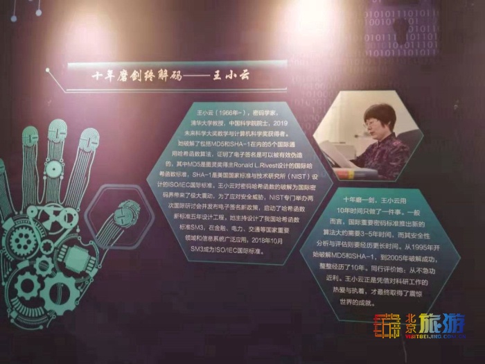 展览上有一个部分是讲的密码学,这个领域可能多数观众听都没听说过。清华大学教授,女科学家,中科院院士,十年如一日最终破解了国际上的尖端密码。