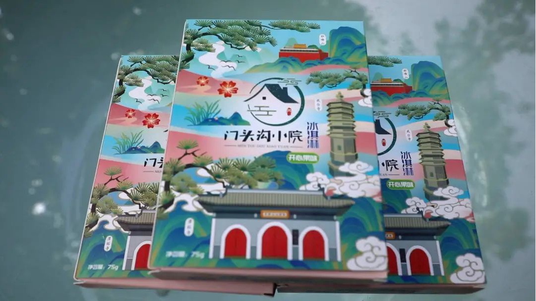 文创产品融入当地诸多旅游元素,用潭柘寺、戒台寺等标志性建筑图案装饰外包装盒,把“门头沟小院”LOGO制作成冰淇淋,传递了京西文化中蕴含的人文精神和艺术魅力。
