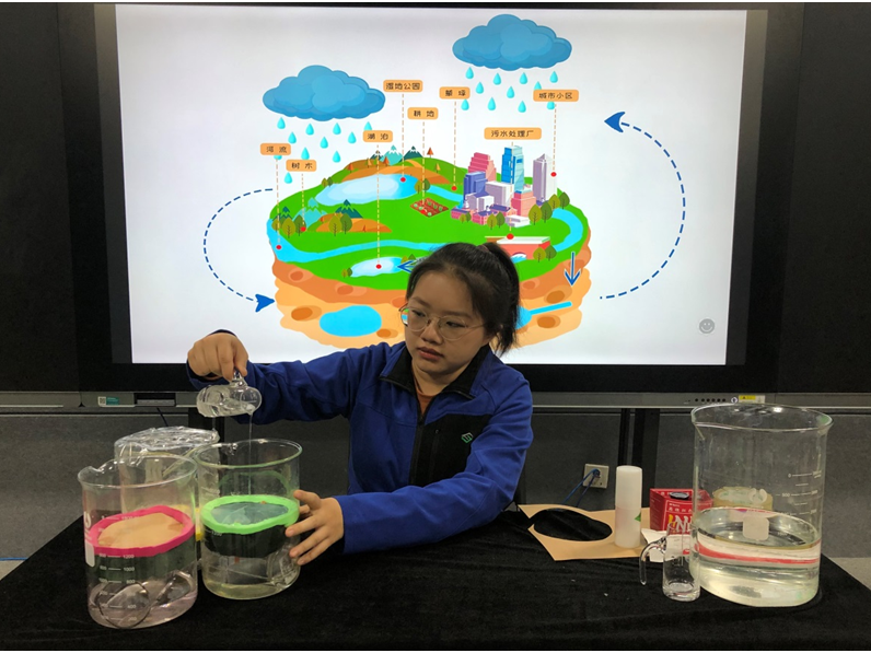 首先,辅导员老师围绕建设海绵城市的四个关键词“渗、滞、蓄、净”,带公众一起动手完成路面降水、吸水、蓄水等居家小实验,让公众深入了解海绵城市概念和生态优先的建设原则,认识到海绵城市的作用是最大限度地实现雨水在城市区域的积存、渗透和净化,从而促进雨水资源的充分利用和生态环境保护。