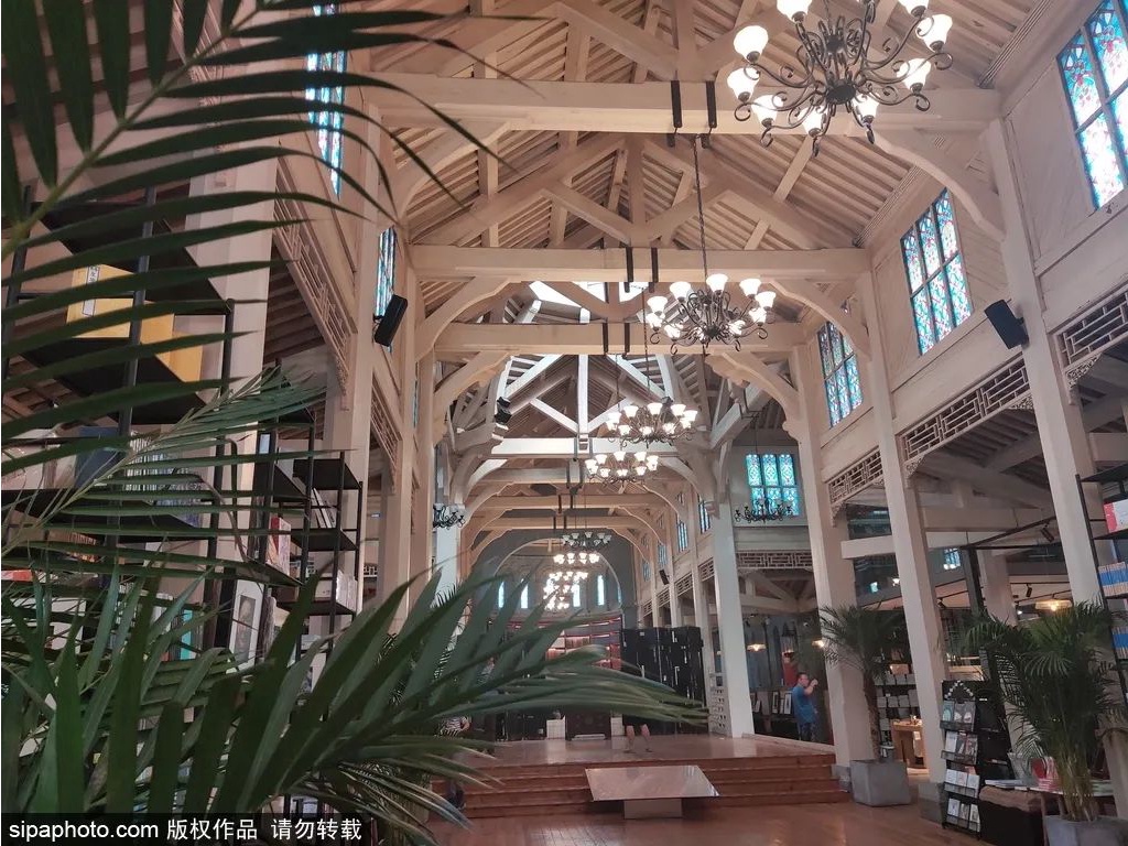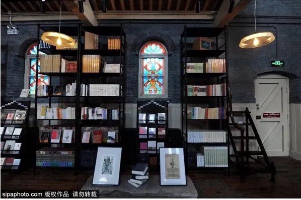 在变身为书店之前,它是中华圣公会教堂,这里的每一处细节都透出教堂的迷人魅力,堂内装修富丽堂皇,高耸的穹顶,有着西方韵味的玻璃窗,复古的木地板,排列整齐的书架分列两旁,大厅也显得格外宽敞亮丽。