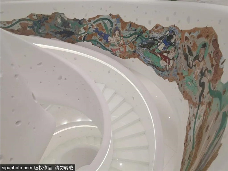 连通B1和2层后庭的石窟云梯上布满了龟兹壁画,诠释着西域美学。