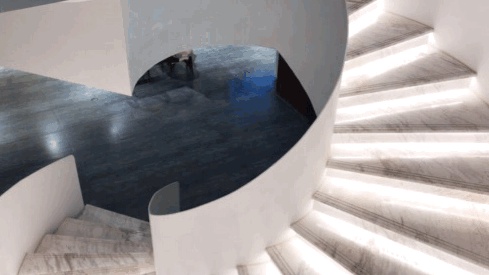 随着读者的靠近,旋转楼梯的灯光依次亮起,好似缓缓展开的书卷,仪式感瞬间拉满。
