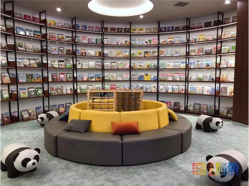 一层图书综合区设有亲子区阅读体验中心,小朋友可以与小熊猫一起轻松快乐地阅读。
