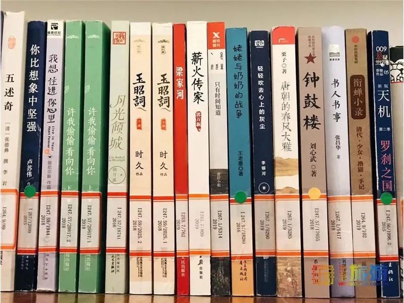 书脊上有红色标签的图书,是北京市公共图书馆网络藏书,绿色标签的图书是更读书社藏书,这两种类型的图书均可免费借阅。