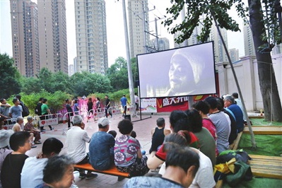 日前,红桥区运河新天地夜市露天电影首映场──《小兵张嘎》正式拉开帷幕,引来众多市民游客驻足观看,共同重温旧日情怀。现场不少没看过露天电影的小孩子充满了新鲜感和好奇,觉得十分有趣。据了解,除不定期放映露天电影外,运河新天地夜市还将陆续举办夏日狂欢寻宝之旅、谦祥益相声表演、钢琴演奏等活动,不断丰富市民游客夜间休闲生活。张喜旺 摄