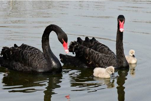 近日,在圆明园安家的黑天鹅孵出了两只小黑天鹅,这两个可爱的小家伙跟着爸爸妈妈一起在水中游玩,在窝里小憩,成为公园夏日里一道美丽的风景。