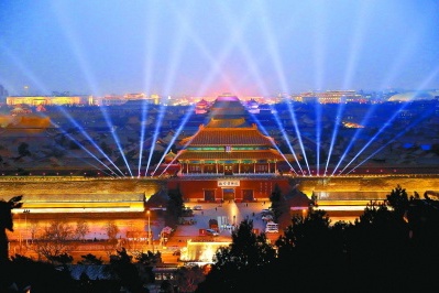 今天是元宵节,清晨天降瑞雪,夜晚又有“最大满月”助兴,今晚,故宫一场万众瞩目的灯光“大秀”将首次面向公众开放。昨晚,北京故宫博物院灯光提前点亮,为元宵节灯光“大秀”进行彩排。 本报记者 程功 摄