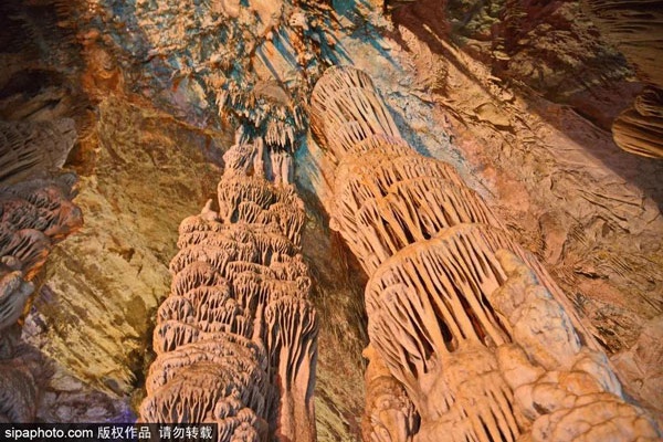 这些景观姿态万千,大多是由流水和停滞水沉积形成。石花、石枝、晶花、石柱、石笋、石菊、石珍珠、石梯田……众多五彩的石化美景~