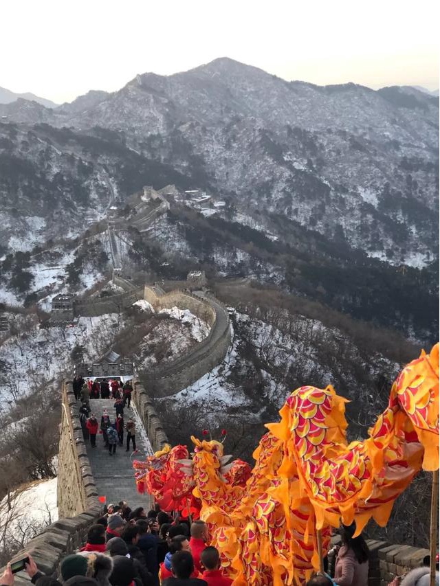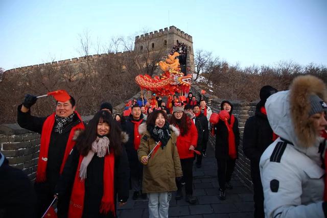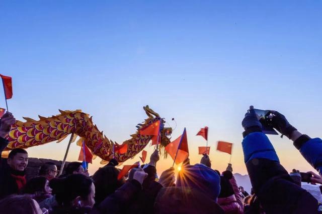 此次观日出活动保持了以往的传统舞龙舞狮、鼓舞节目。在鼓声隆隆中,来自世界各地的游客们用最中国的方式迎接长城上的新年朝阳,体会了不一样的长城观日出。