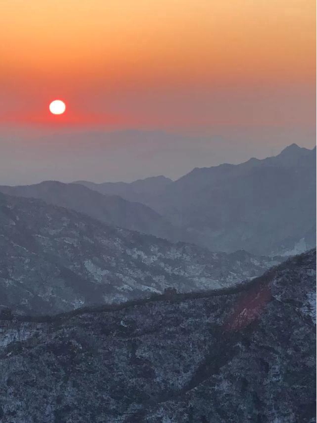 在这长城上登高远眺,凭古怀幽,古战场的金戈铁马似乎就在眼前。中华民族的血脉穿透历史与今天的长城连接在一起。那新年的朝阳照亮过前人的辉煌成就,今天它依旧会照亮我们新时代的希望。今天的长城寒冷与温暖交织,虽是在严冬季节,但是这长城上的热情就像是朝阳,点亮了心中的温暖。