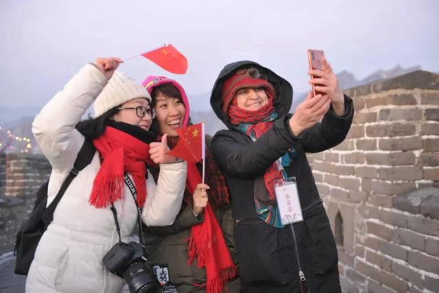 中国的长城也是世界的长城,在这次观日出活动上还有来自巴基斯坦、白俄罗斯、尼日利亚等国家的外交官一同来庆祝新年。