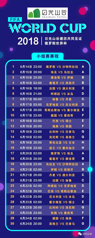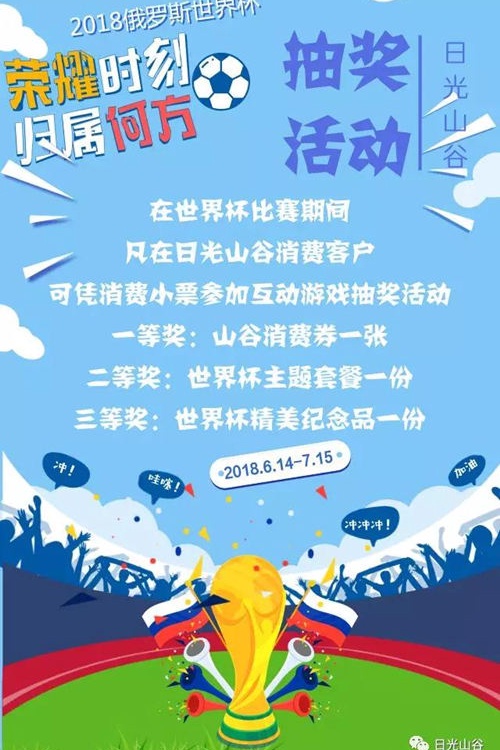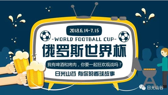 世界杯正式开始了!小伙伴们昨天看球了么?足球是全世界人民的一场狂欢,上一次熬夜喝啤酒看世界杯才过去不久,朋友打赌较劲哪只球队赢的场景历历在目,不要惋惜,眨眼之间最新一届世界杯又开始啦!小编推荐您在这个激情6月,来密云日光山谷享狂欢盛宴。