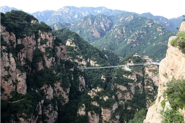 北京平谷石林峡景区的飞碟玻璃观景台,坐落在石林峡景区最高峰,龙王顶“古今第一钟”景点处,是迄今为止世界上面积最大的观景平台。