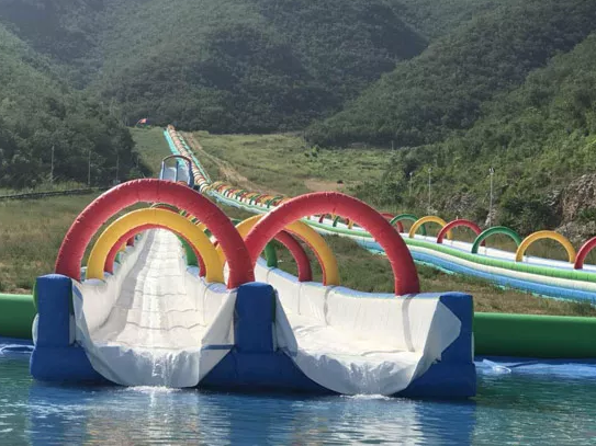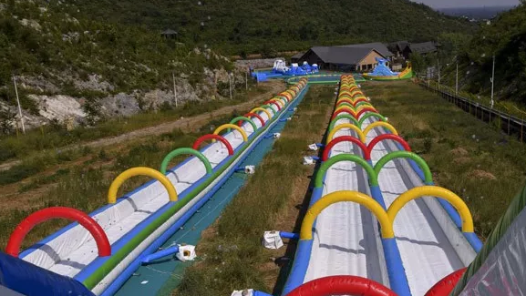 这里的高山滑水和一般的郊区河道滑水不同,静之湖高山滑水是从山顶铺设充气水道,安全系数较高,孩子大人都能玩,你可以坐魔毯上山顶,从山顶充气水道滑下,体验与众不同绝对惊险和刺激。