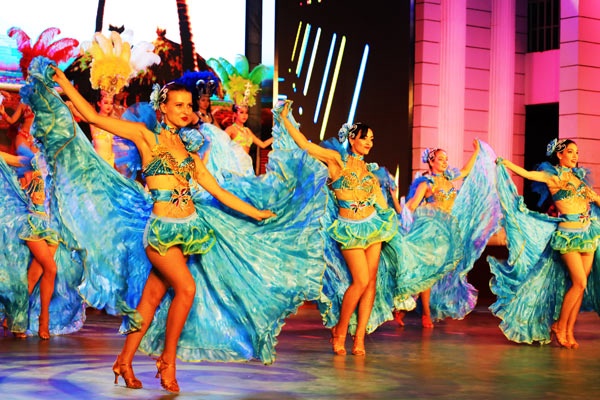 “激情欧罗巴”。西班牙美女歌手加萨克斯配奏助演,演艺激情乐章。英国百老汇歌舞里玛丽莲•梦露真人秀回望经典。莫斯科女孩三人时尚组,载歌载舞完美演绎“狂吻俄罗斯”。荧光芭蕾,展现足尖上的高雅与浪漫。“燃情阿非利加”。 非洲狂欢•火神降临---乌干达黑人土著演员与佤族兄弟一起同跳现代之舞--哇咔哇咔,火舞技巧跨界融入其中,展现非洲狂欢之夜。“纵情加勒比”。纵情欢舞,再现南美狂欢节热点场面。热辣靓女身穿彩色羽毛盛装,舞动性感腰肢,俊俏美男,赤膊上阵,展现美洲大陆特有风情。现代狂飙---摩登与拉丁舞的完美融合,在力与美中,呈现非凡的视觉盛宴。“煽情太平洋”。网热抖音——海草舞,椰风海韵般的草裙舞,在炫彩星夜,刮起一股倾赏心的青春风暴。“风情亚细亚”。风情万种的阿拉伯女郎,撩人心扉,曼妙的肚皮舞在鼓点的节拍里,跳动着性感与妩媚。中国杂技---绸吊,高空飞舞中,将惊与险、力与美、幻与妙的特质展现得淋漓尽致。