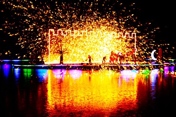 穿越时空,跨界千年的熔点,迸耀出灿烂的火花。大地之光、千年之光、传承之光、民族之光四大演艺章节,散发着精神与力量,匠心与智慧的正能量。铁花火龙舞,火树银花秀、星河月亮船,梦幻出“忽如一夜春风来,千树万树梨花开”的神奇美景。