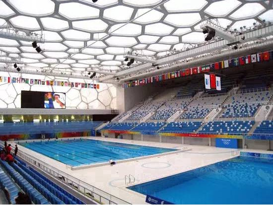 位置就在奥林匹克公园里面,走近就能看到水立方漂亮的外观了,从水立方西侧的门进来,里面需要安检才能进,毕竟这是国家级的游泳场馆。里面的空间特别大,里面有比赛专用的泳道,泳池也分为深水区和浅水区,当然啦,里面游泳的人也特别多~除了大人,还有很多小孩子也在这里学习游泳,水质特别清澈,游起来很舒适~