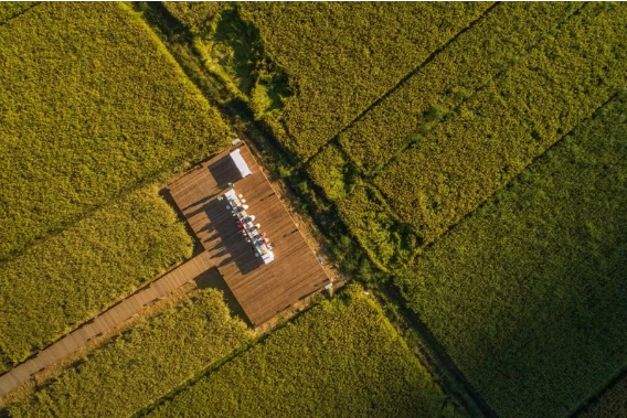 村里有古树,有千亩稻田,值得一提的是稻田中央的稻田餐厅,目前尚属华北最大,是结合中国的农耕文化、稻作文化,以稻田为主体景观的美食艺术空间。未来,在这个稻田平台上, 还可以做各种活动,稻田餐会、稻田舞台、稻田剧场,稻田婚礼等。