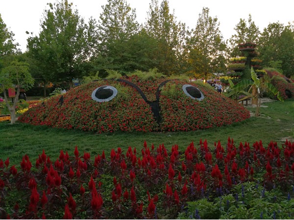 游客还可以登上位于园区南部8米高的长城观景台,俯瞰周边,欣赏采用翎羽造型点缀,辅以各色花卉衬托的花神广场展示区;利用色彩艳丽的羽状鸡冠花搭配新增白色兰花鼠尾草的樱花大道展示区等。另外在种植风格上,园区新增国内较罕见的金丝麦浪、泉乡万盛、枫叶晚红、春日剑山等30多种特色花卉,在育苗、定植和日照、秋养上下功夫,通过增大局部种植密度,延长局部观赏区时间等方法,拼接出了一幅幅色彩斑斓的大地艺术品。