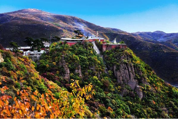 妙峰山景区主峰海拔1291米,雄居于“小西山”诸峰之上,是距离北京城最近的一座海拔千米以上的山峰。妙峰山清秀峭拔,草木丛郁,清泉飞瀑,蝶舞花香,被称为“北京第一仙山”。秋季的妙峰山,整个景区被枫林、松林、杏林、黄栌覆盖,满眼红叶如火,满眼万叶斑斓,绵延数十里,层林尽染,好似一幅大写意的国画,使游人如在画中游。