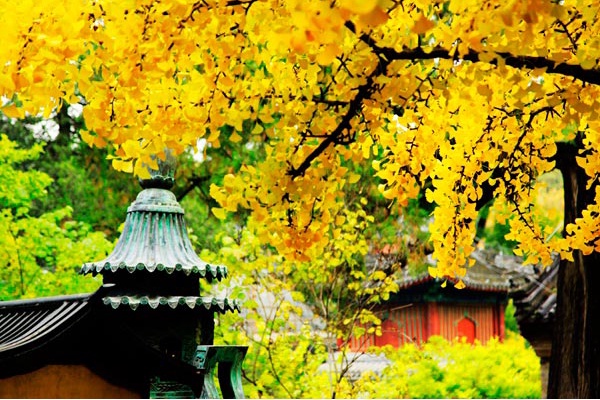 赏叶小贴士:红螺寺雌雄银杏本周已开始褪绿变黄,预计本月最后一周将有望进入最佳观赏期。