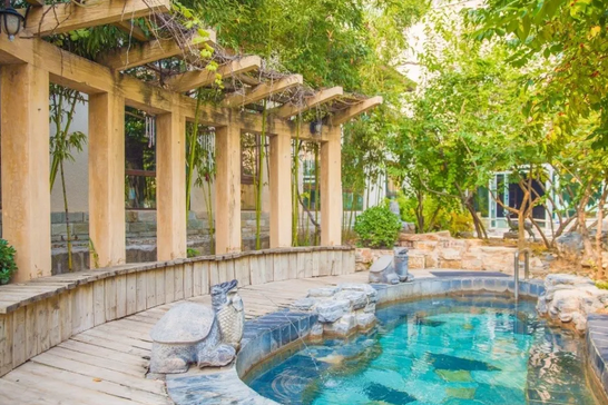 凤山温泉总占地21000平方米,室内外各种温泉浴68种,无论室内亦或室外,都是泉中有景,景中有泉。室内温泉一派浓郁的热带雨林风情,高大的芭蕉树、凤尾竹等热带植物四季葱绿,俨然一个生机盎然的热带植物园,茂密的绿植将温泉小池一个个巧妙隔离,营造出私密、安静的泡汤环境。