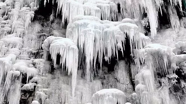 水是大自然神奇的存在,夏日这里潺潺的湖水,如今零下十几度的气温下变成了银装素裹的冰瀑,往日流水潺潺的清流凝结成洁白的山间“玉带”,大自然赋予它无限可能,美丽的瀑布定格一瞬,令人无数人向往。